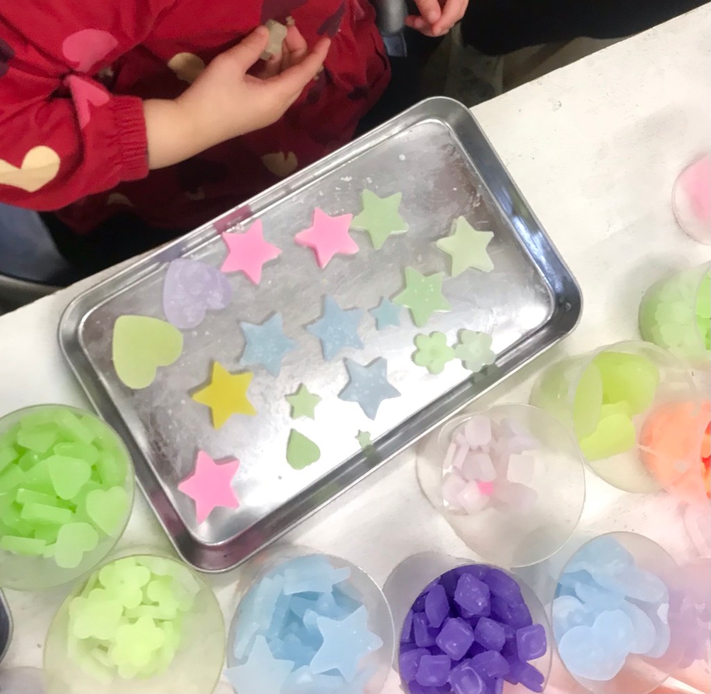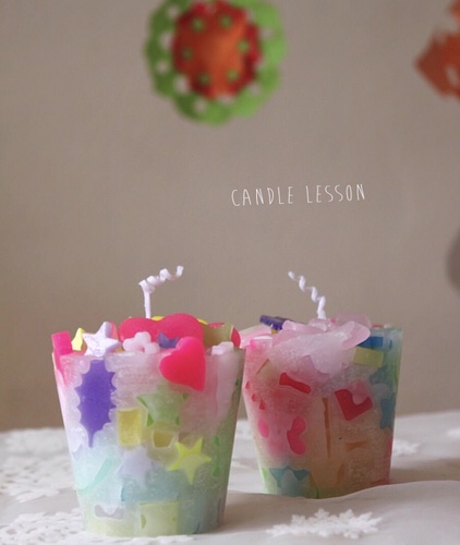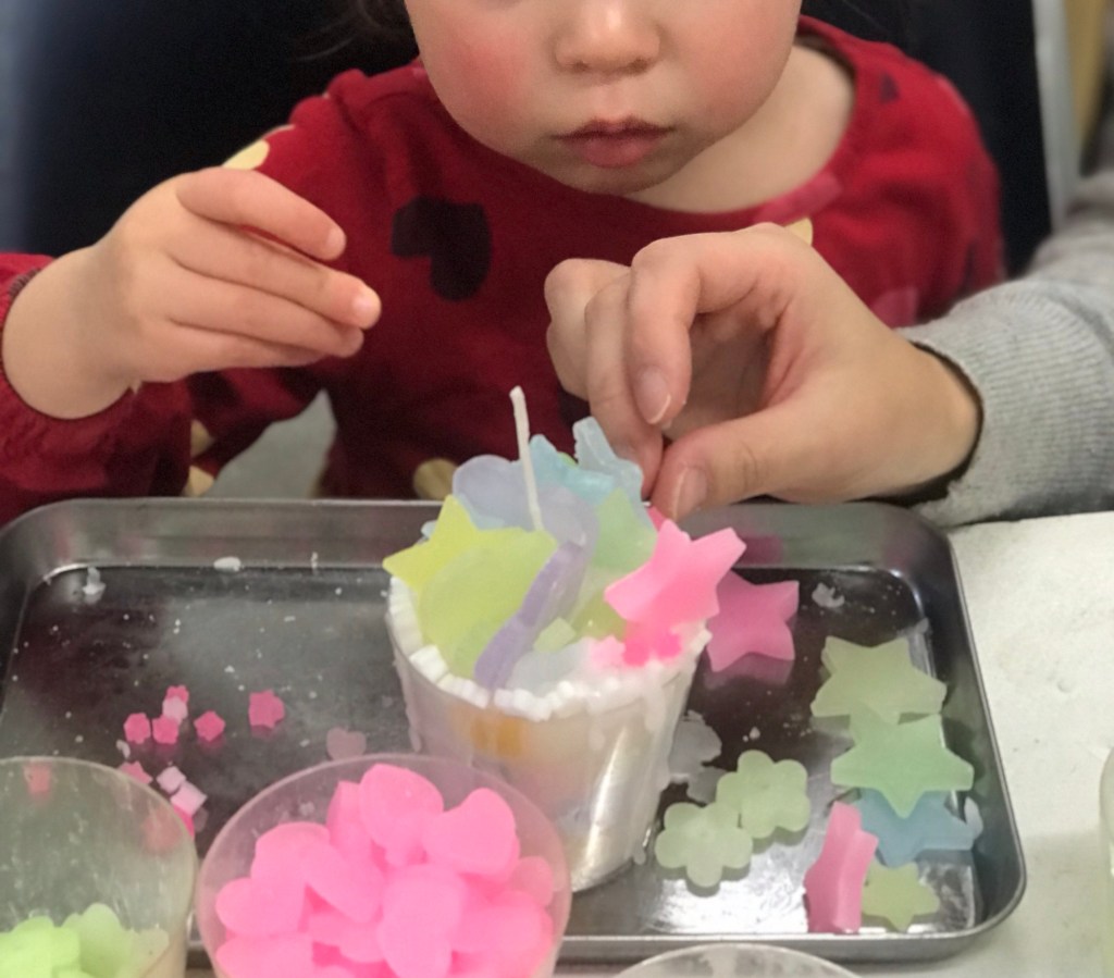 カップキャンドルレッスン、小さなお子様はカラフルなキャンドルを触っているだけでもとっても楽しいです✨小さなお子様でも簡単に制作できます。