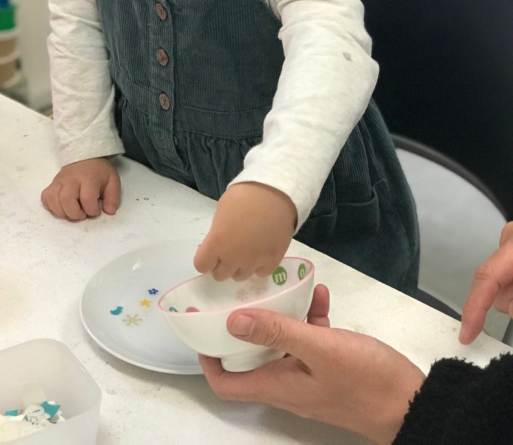 食器レッスンはシールを選んで器に貼る簡単な作業です。小さなお子様でも簡単に制作出来ます。